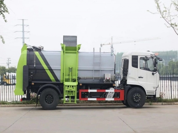 餐廚垃圾車,又稱餐余垃圾車、余廚垃圾車或者泔水車,餐廚垃圾車是垃圾車中的一種,是用于收集和運輸生活垃圾、食品垃圾(泔水)專用車輛。上裝由箱體、后門總成、后門開啟機構、密封鎖緊機構、推板機構、掛桶提升機構及操縱機構等組成。有裝、卸垃圾自動化程度高、工作可靠、密封性好、裝載容積大、操作簡便、作業過程密閉,無污水泄露和異味的散發,環保性好等特點。餐廚垃圾車不僅優化了居民居住的環境衛生,減少了空氣中的餐廚垃圾臭味,減少孳生蟑螂、細菌的可能, 改善了環衛作業環境,減少垃圾的四處分散造成的污染。